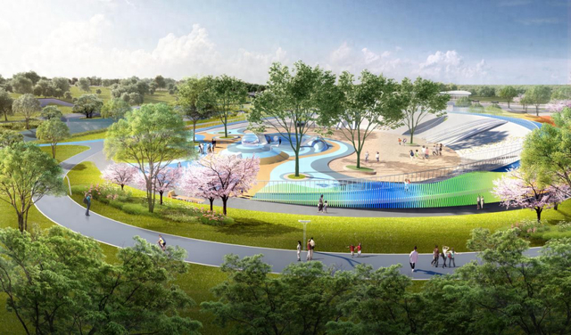 三江公园效果图三江公园总面积约453亩,以“现代极简园林中统筹融入新中式园林风格”为设计理念,打造“三园十二景”的“三江慢享公园”。