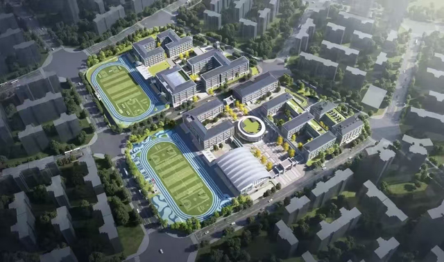 该校位于怡心湖核心片区,占地110余亩,包含13栋建筑,建成后设置小学、初中共计36个班,明年9月有望开学。