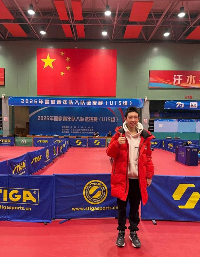 又有一名来自金牛区的青少年运动员入选国家乒乓球青年队了!近日,2026年国家青年队入队选拔赛(U15组)在河北正定国家乒乓球训练基地举行,来自全国37个单位的235名顶尖青少年选手在此展开角逐,经过6天、881场高强度对抗,最终仅有21名运动员获得国青队入场券,堪称“百里挑一”。来自成都市金牛区的于溢洋成功入选国家青年男子乒乓球队。