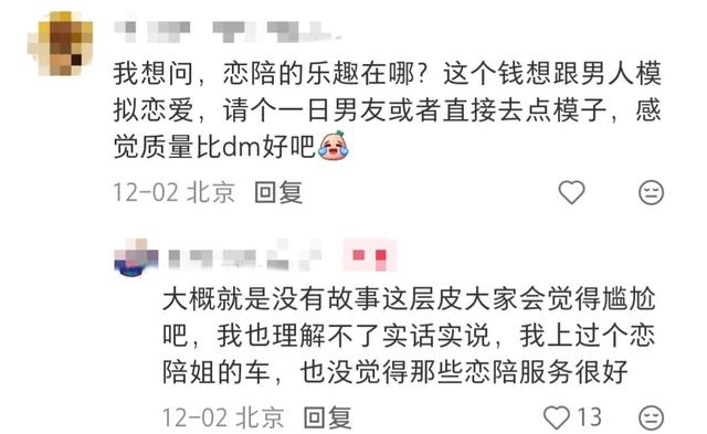 面对如此投入,旁观者的反应往往是最直接的:“这恋陪纯是素菜荤价,为什么不直接点个‘模子’?”