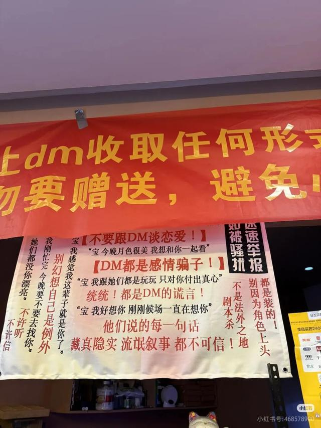 有良心的剧本杀店主会贴出霸屏标语:不要和恋陪DM谈恋爱,切忌上头谨防诈骗。但即便如此,还是拦不住恋陪姐的来势汹汹。