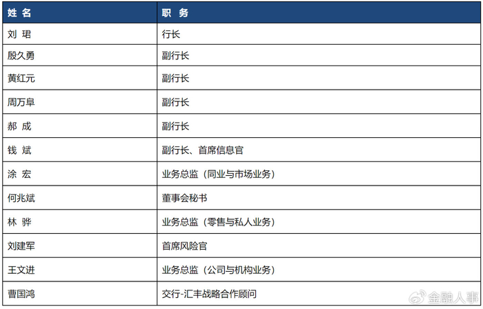 官网显示,目前交行管理层架构为“一正五副”,高管人员共计12名。