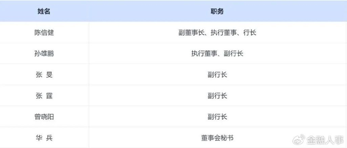 据兴业银行公告梳理,2023年2月14日,张旻、张霆副行长的任职资格同时获核准;7月18日,行长陶以平、监事长陈信健辞任;7月25日,兴业银行聘任陈信健为行长,聘任曾晓阳为副行长,两人的任职资格已于去年10月先后获得核准。至此,兴业银行形成“一正四副”的管理层架构。