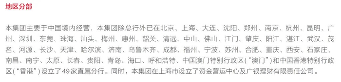 广发银行直属分行地区分布