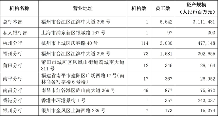 截至2025年6月末,兴业银行共有45家一级分行,其中,大本营福建省设立有福州、莆田、南平等9家一级分行。