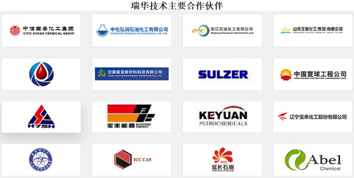 瑞华技术的技术及产品成功服务中石油、中信国安、浙石化、振华石化、福建海泉、福州万景、洛阳炼化、安徽嘉玺、东明石化和盛腾科技等众多大型国有及民营石油化工企业,并与霍尼韦尔UOP、科莱恩、瑞士Sulzer、中国寰球等上下游国内外知名专利商、设计院建立了良好的合作关系。