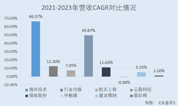 经金基研计算,2021-2023年,上述六家瑞华技术同行业可比公司的营收CAGR均值为7.45%。