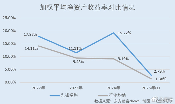 据东方财富choice数据,2022-2024年及2025年一季度,先锋精科的ROE分别为17.87%、11.51%、19.22%、2.79%。
