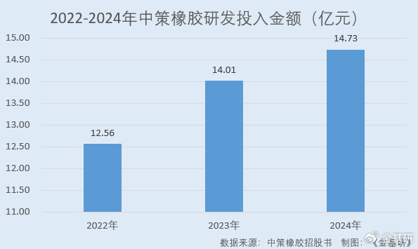据招股书,2022-2024年,中策橡胶研发投入分别为12.56亿元、14.01亿元、14.73亿元,呈持续增长趋势。