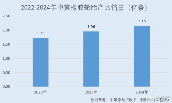 2022-2024年,中策橡胶轮胎产品销量分别为1.73亿条、1.96亿条、2.16亿条。