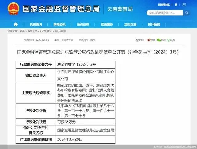 最近,永安保险迪庆中心支公司被罚28万元,两名员工被罚款6万元,原因也涉及到虚挂代理人套取费用。