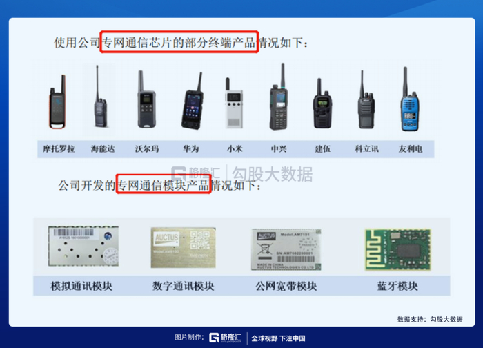 主要产品包括专网通信芯片及模块、专网通信终端、射频功放、系统设备及软件等,其中:
