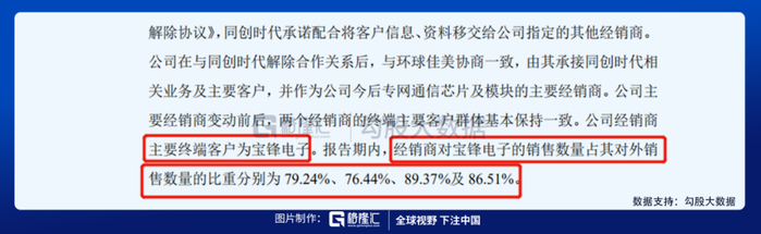其一,2019年、2020年上半年,环球佳美对宝锋电子的销售数量占其对外销售数量的比重分别为89.37%、 86.51%。(注:因2018年主要经销商变动,未披露各自销售数量)