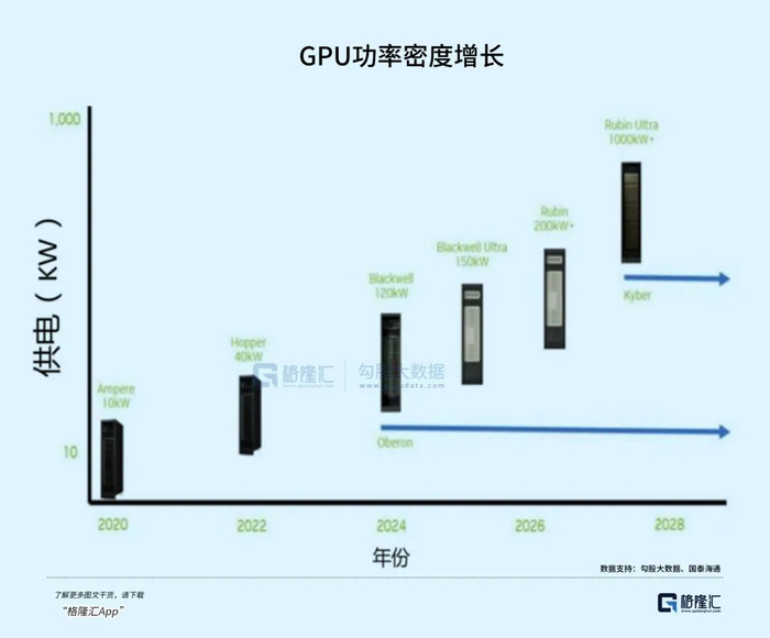 传统IDC单机柜功率仅5-8kW,AI数据中心机柜功率密度可达30-150kW,差距极其巨大。