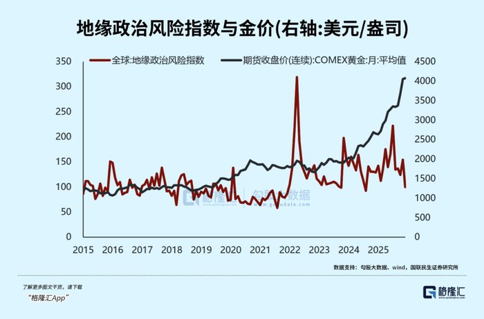 如果说前面两个逻辑是“慢变量”,那地缘风险和美联储降息就是推动金价上涨的“快变量”,让牛市节奏更快、更猛。