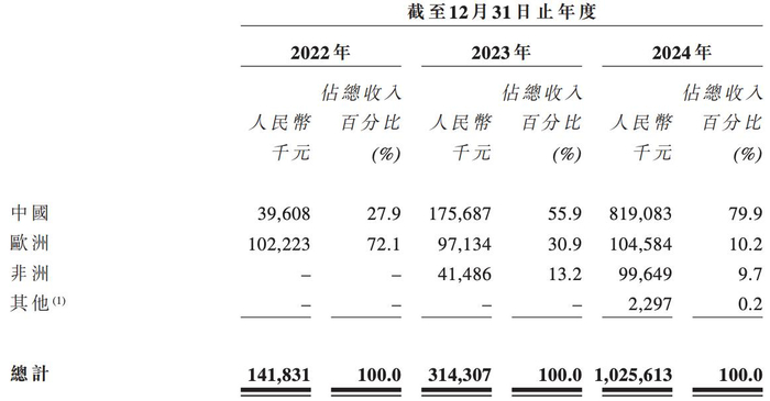 按地区划分,果下科技的收入主要来自中国、欧洲、非洲等市场。2022年,该公司来自欧洲的收入占比高达72.1%,而2023年则降至30.9%,2024年进一步下降至10.4%。与之对应的是,该公司来自欧洲市场的收入在2023年下降4.98%,2024年恢复增长。