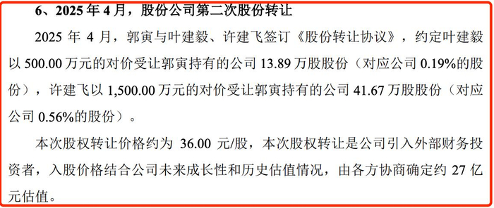 相比之下,郭寅亦在2024年12月向安丰元港、安丰富盛转让了易思维的0.15%、0.22%股权,分别作价400万元、600万元。2025年4月,郭寅向叶建毅、许建飞分别转让0.19%、0.56%的股权,分别作价500万元、1500万元。