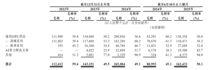 此外,由于低毛利的AI算力解决方案业务占比提升及新品迭代、定价策略调整造成的通用GPU产品毛利率的下降,天数智芯的毛利率已由2022年的59.4%降至2025年上半年的50.1%,同业竞争冲击下的商业化路径将更具挑战。