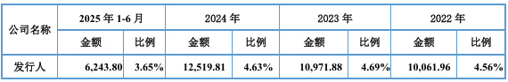 报告期内,红板科技的研发费用占营业收入的比例分别为4.56%、4.69%、4.63%和3.65%,而行业平均值分别为4.70%、5.14%、5.13%和4.89%。