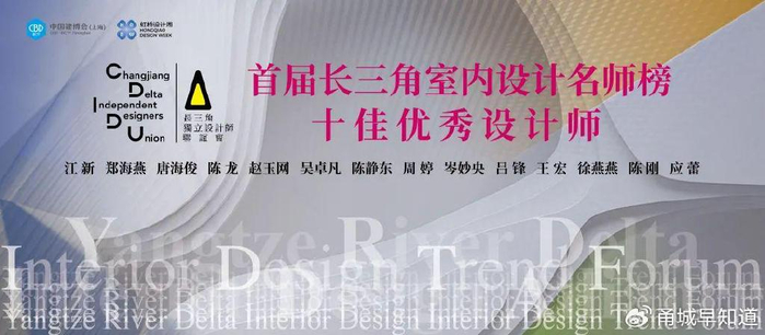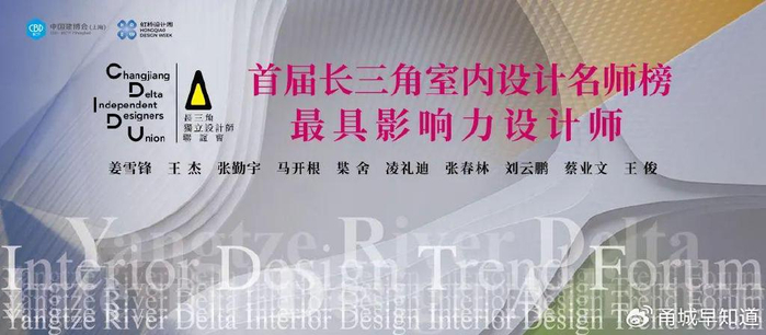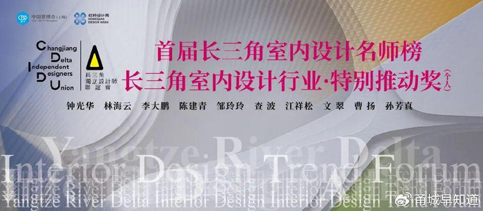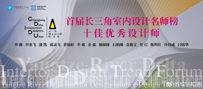 本次活动由中国建博会特别支持,长三角独立设计师联谊中心、虹桥设计周联合主办,长三角室内设计联盟、20+城市协会/机构、DF设计聚焦·中文版、聚向传媒协办,并取得了帕豪门窗、嘉斯顿、科饶恩、极景、大洋、热念品牌的大力支持,旨在积极响应长三角一体化倡议,全方位加强长三角地区室内设计师之间的交流与合作,进一步提升区域建筑设计水平。
