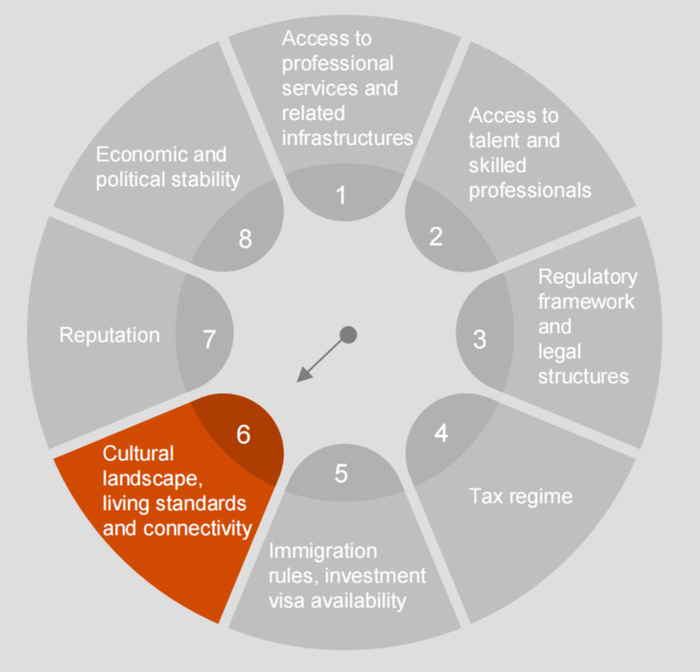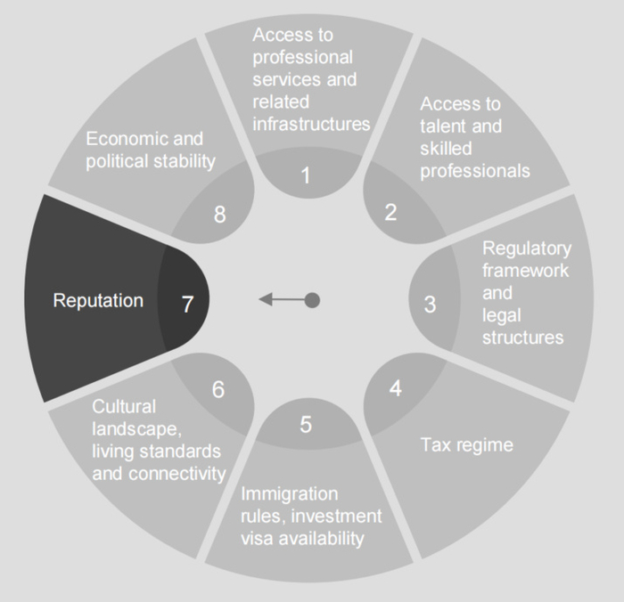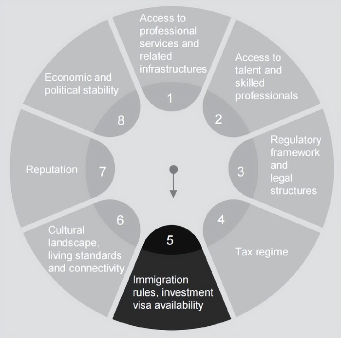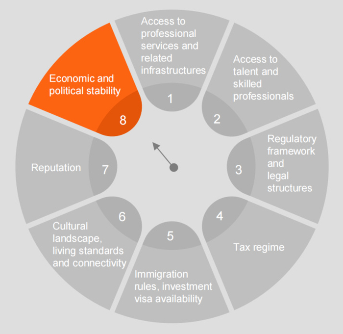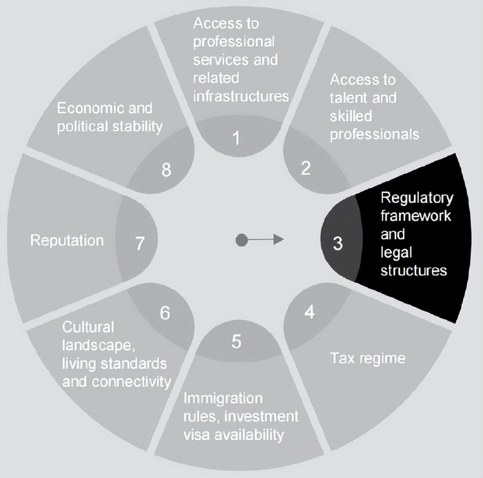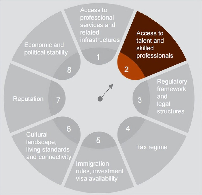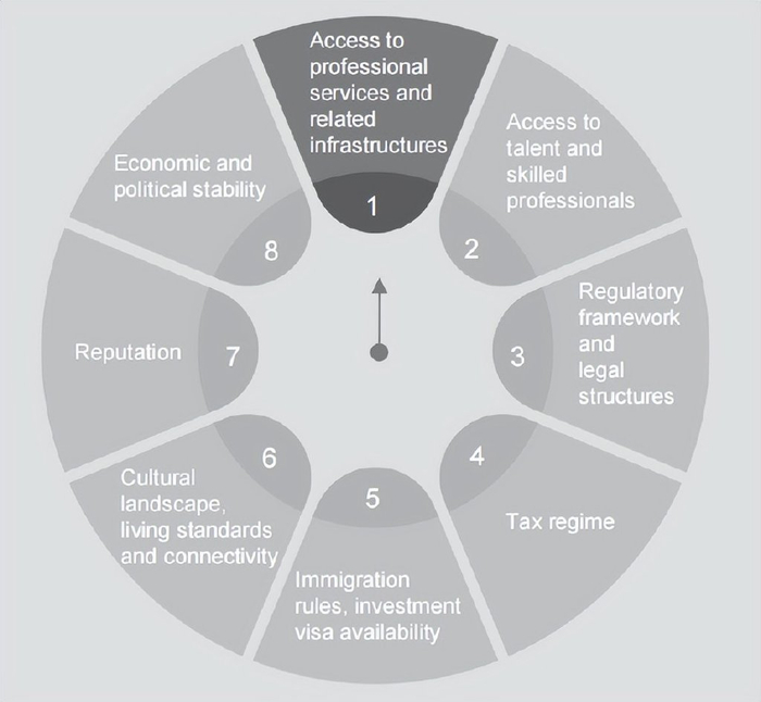 这些因素包括声誉、监管框架、税收制度、获取专业人才的能力、政治和经济稳定性、获取专业服务、基础设施质量等。