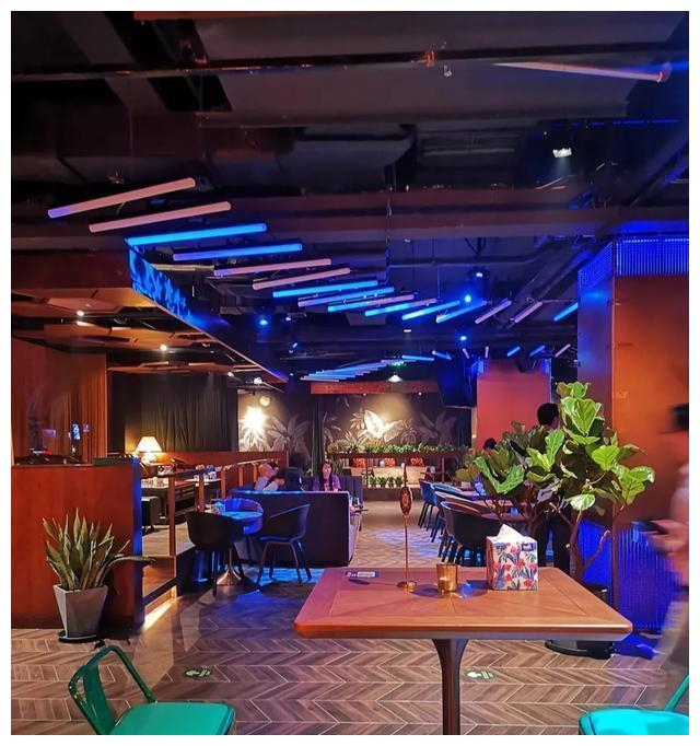 除了这些,这个酒吧的设计感也是带科技感的元素。酒吧里面的灯光都是专业灯光师设计的,在晚上歌手们唱歌之后非常有氛围。