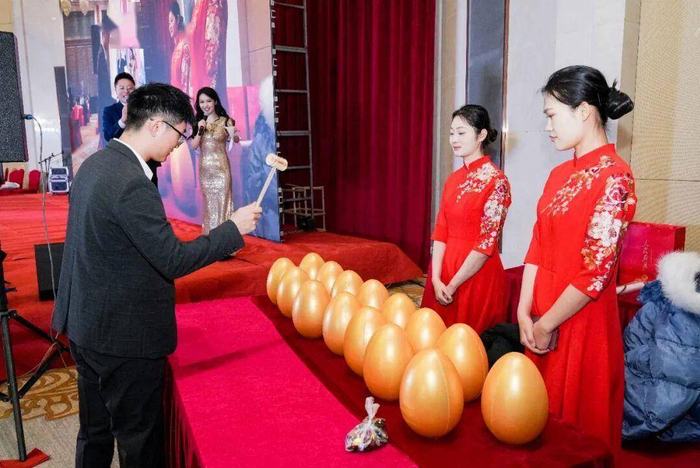 会场设置有盲品竞猜区、福字对联书写区、抽奖砸金蛋区、赞助商展示区等等丰富多彩的活动设置为本次会议增加了趣味性和参与感;让到场来宾体验了浓浓的节庆氛围,也在四九隆冬首日喜降瑞雪的京城汇聚成一团暖流。
