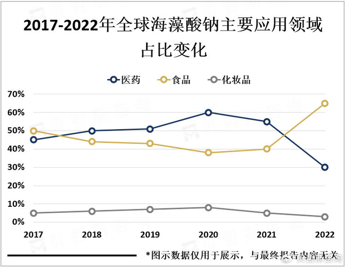 2017-2022年全球海藻酸钠主要应用领域占比变化
