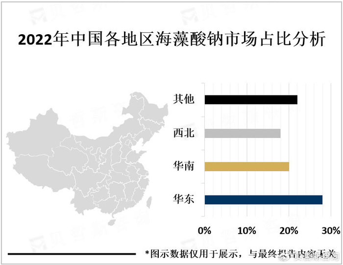 2022年中国各地区海藻酸钠市场占比分析