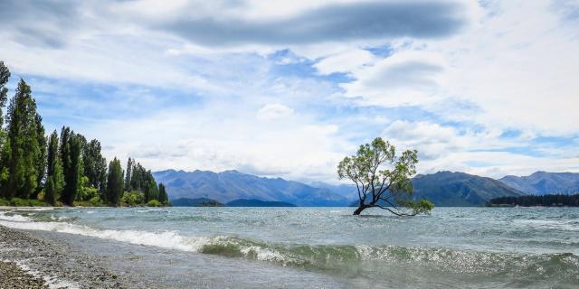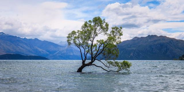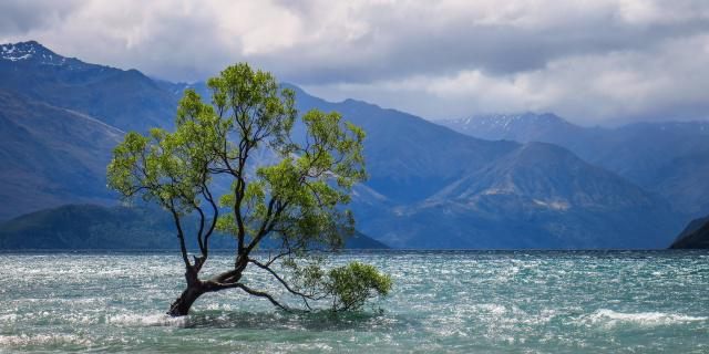 瓦纳卡湖不仅有着风景独好的湖光山色,更特别的是这里有着一棵神奇的树,安静地生长在瓦纳湖中。由于它生长在湖中央,无法触手可及,有了些远离市嚣的含义,于是人们给它取了个名字,叫——“一棵孤独的树”。
