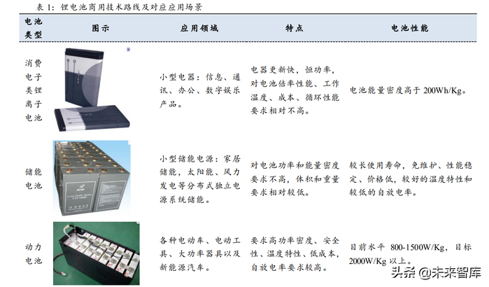 锂离子电池按照其用途可分为消费型锂离子电池、动力型锂离子电池、储能型锂离 子电池。消费型锂离子电池主要用于手机、便携式电脑、数码相机等消费电子产品的锂 电池电芯及模组。动力型锂离子电池主要用于电动汽车、电动工具等动力电池的锂电池 电芯及模组,又称为锂离子动力电池、动力锂电等。储能型锂电池主要用于调峰电源、 储能电池等储能产品的锂电池电芯及模组。
