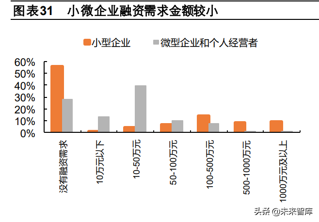 针对需求侧,国家陆续出台政策支持普惠金融和小微企业发展。小微企业作为我国经济的“毛细血管”,贡献了我国 50%以 上的税收、60%以上的 GDP、70%以上的技术创新成果和 80%以上的城镇劳动就业。据统计,2020年末我国拥有市场主体 1.4亿户,其中个体工商户有 9千万户,占比 67%。近年来,国家政策大力支持普惠金融,通过定向降准、成立国家融资担 保基金、要求银行设立普惠金融事业部等方式,支持小微企业发展。疫情爆发以来,国家更是加大小微企业的纾困力度,包 括:实行小微企业贷款延期还本付息,推出制造业中小微企业缓税、个体工商户减免所得税等政策。