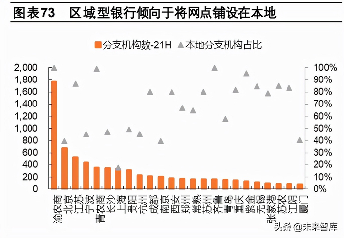 1)在线下,银行依托地推团队触达企业,实地了解、持续跟踪企业的真实经营情况,我们看到深耕本地的区域型银行能够 实现良好的真实触达。目前,传统银行普遍都保留线下地推的获客方式,部分根植本地的区域型银行充分发挥了人熟地熟的 优势,从而更好实现真实触达。如常熟银行等区域型银行在本地铺设了大量网点和地推团队,全面覆盖当地的小微企业,形 成本地经营的竞争力。同时,区域差异一定程度上会影响银行所面临的信贷需求,但银行可以通过不断下沉、挖掘客户,更 大程度地开拓本地市场,从而推动小微信贷规模的增长、有效管控风险,因此银行的真实触达能力至关重要。
