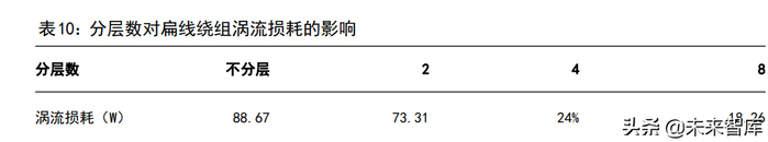 3)10 层扁线绕组电机。在特斯拉介绍上海超级工厂的预告片中,展示了电机的生产工艺。我们可以看到,特斯拉的电机已经落地了扁线技术,并且在定子绕组的特写中,每一排有 5 个焊接点,每个焊接点有 2 根扁铜线,特斯拉的扁线电机定子绕组已经达到 10 层,生产加工工艺拥有较高的壁垒。(报告来源:未来智库)
