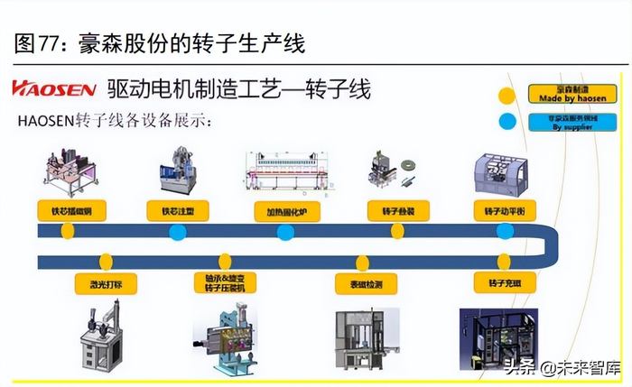 豪森股份重点研究开发目前市场需求最大的扁线电机工艺装备生产线,同时,通过自主研发和与圆线电机工艺装备厂商合作等方式,积极拓展传统圆线驱动电机工艺装备领域,现已经获取上海龙芯、天际汽车、宁波威睿汽车等客户的驱动电机智能生产线订单。