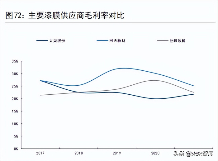 2021 年 上 半 年 , 太 湖 股 份 / 回 天 新 材 / 巨 峰股份的销售收入分别为2.43/14.09/3.67 亿元,毛利率分别为 22%/25%/23%。回天新材的营业收入和毛利率都处于领先水平。