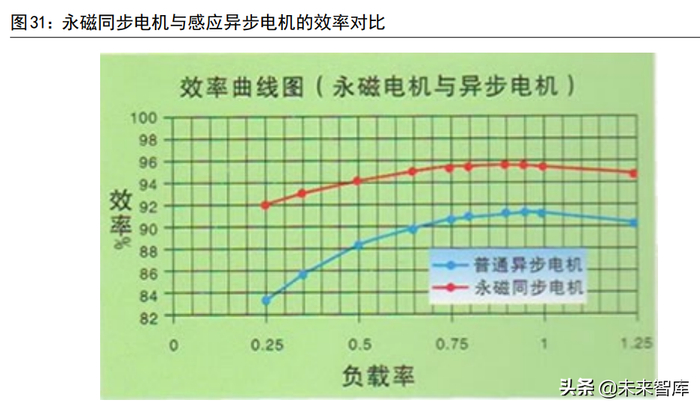 2)运行效率高:受益于转子中的永磁体,永磁同步电机的转子通常无需通电(部分自启动工况或涡流损耗除外),可减少相关的能量损耗,效率较高。
