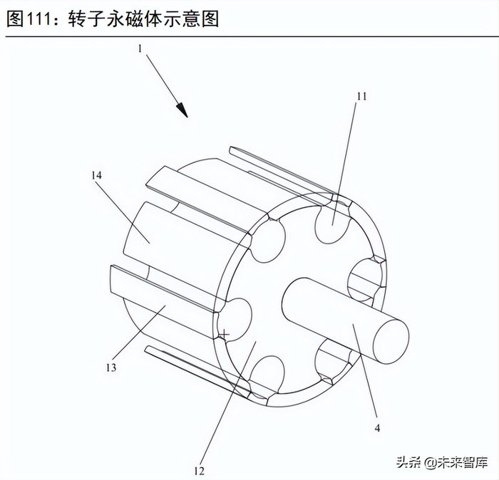 在具体的设计工艺方面,根据国家知识产权局披露的比亚迪专利文件,2021年下半年以来,比亚迪在电机总成、散热结构、定子设计、转子设计上均有新技术突破。我们将对最具代表性转子设计进行简单介绍。