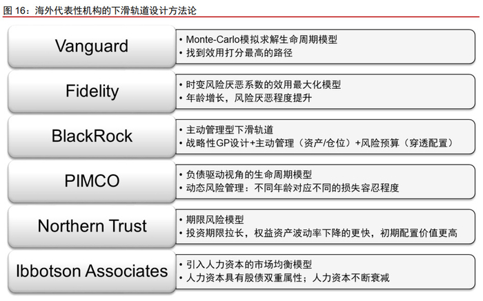 公募基金:(1)公募机构在投研领域积累深厚、具备较强的资产配置能力,资产 配置对组合的长期业绩表现起到决定性作用,完备的资产配置模型体系是长期投 资实现稳健业绩的有力保障。(2)公募机构在权益投资领域具备较深的经验积累, 尽管权益资产短期波动较大,但长期增长潜力突出,权益类资产投资在养老场景 下将发挥重要作用。(3)公募机构在投顾业务方面具备一定的积累,投顾业务能 够提供定制化配置方案设计,有望在养老这一高度个性化场景下发挥重要作用, 《个人养老金投资公开募集证券投资基金业务管理暂行规定》也为未来投顾业务 发展预留了政策空间。(4)海外经验来看,目标日期基金是养老金融市场中规模 最大、最具代表性的产品。公募机构在目标日期策略领域具备一定的研究积累和 投资经验,有望借助该类产品实现规模的稳步增长。