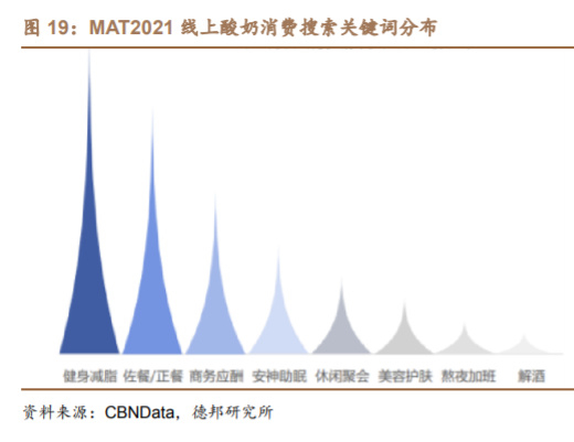消费趋势三:社交场景减少导致酸奶需求受限,预计 2023 年消费场景恢复 后酸奶渗透率将进一步提升。随着酸奶逐渐向零食化发展,其食用场景主要出现 在消费者餐后助消化、早餐以及下午茶场景,成为消费者生活中丰富体验的健康 点缀。同时,根据消费者线上搜索词分布,商务应酬、休闲聚会等场合的出现也 赋予了酸奶更多社交属性。下午茶等新酸奶消费场景的出现推动酸奶高品质发展, 但疫情影响下外出聚会、商务应酬等社交场景频次下滑明显,酸奶的多元需求受 限,我们预计 2023 年随着疫情管控放开,酸奶消费场景的拓宽与触达消费者频 次的提升将带动酸奶渗透率提升。