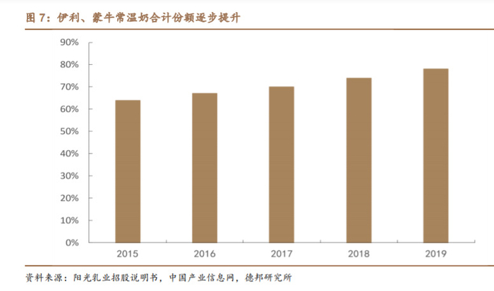 从细分行业来看,常温奶领域双寡头优势明显。常温奶又称为 UTH 奶,常温 奶是采用超高温瞬时灭菌技术加工的产品,能够长期保存。现阶段,我国常温奶市 场已进入成熟阶段,处于低速增长态势。我国常温奶市场已形成伊利、蒙牛双寡头竞 争格局,行业前二市场占有率接近 80%。