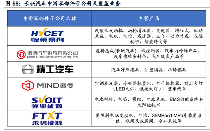 为响应“碳达峰”、“碳中和”政策,长城汽车发挥一贯的垂直整合能力,全面推动产 品向电动化、智能化、网联化发展;依托森林式生态,长城汽车现已构建起覆盖动 力电池、动力系统、智能驾驶、智能座舱、整车底盘设计、电子电气架构、氢能源 等产业链上、中、下游完整的新能源产业生态。
