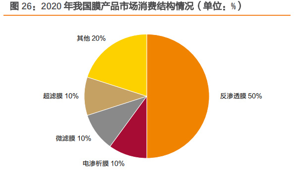 国产替代逐步实现,基础材料与膜产品均有突破。基础材料方面,中国化学与齐翔腾达合 作设立天辰齐翔新材料有限公司,成功研发出丁二烯法己二腈制备技术,2022 年 7 月,年 产 20 万吨丁二烯法己二腈的装置开车成功,并产出己二腈优级产品。我们预计未来我国 己二腈产能或将有效释放,对于膜产品核心材料聚酰胺(PA66)大规模生产具有重要价值。 2014 年,优巨新材于建成年产 1000 吨的聚砜系列(PPSU)产品生产线,掌握聚芳醚砜关 键技术、配方、工艺及装备等完整的核心技术,实现全系列聚砜产品(PPSU、PES、PSU) 产业化生产。根据数据统计,2021 年我国国内聚砜需求量为 0.9 万吨,虽然聚砜年产能达 1.78 万吨,但是国内实际年产量仅为 0.2 万吨,仍有 0.7 万吨市场缺口依赖进口。随着国 内产能和生产量逐渐扩张,预计到 2025 年我国聚砜可以覆盖缺口,但是受限于装置技术 水平,聚砜实际高端产品仍无法满足需求,国产聚砜替代进程仍道阻且长。