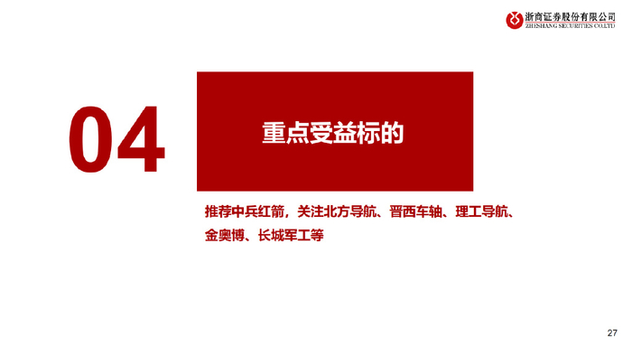 远程火箭炮优势——高精度高性价比:远程火箭炮的技术等级介于传统火箭炮和导弹之间。传统火箭炮打击精度较低;而导弹命中精度较高, 但是导弹成本较高,大规模列装成本高。远程火箭炮的综合技术、战术指标在当下更适合列装部队。 俄乌战争凸显地面兵装配置重要性:2022年俄乌冲突充分展现了,在双方技术实力相差不大、无法取得绝对制空权且战线拉长时,地面兵装 部队的良好建设及远程弹药投送能力将成为制胜关键,远火等需求可能存在超预期增长。 后期——近远程精确打击皆覆盖:火箭军装备重型化和远程化的发展趋势预示着陆军的打击能力也在提高,且两大军种火力打击任务的区分 也逐渐浮出水面。随着火箭军主要使命任务向战略威慑发展,未来陆军有望接替中远程精确打击的任务