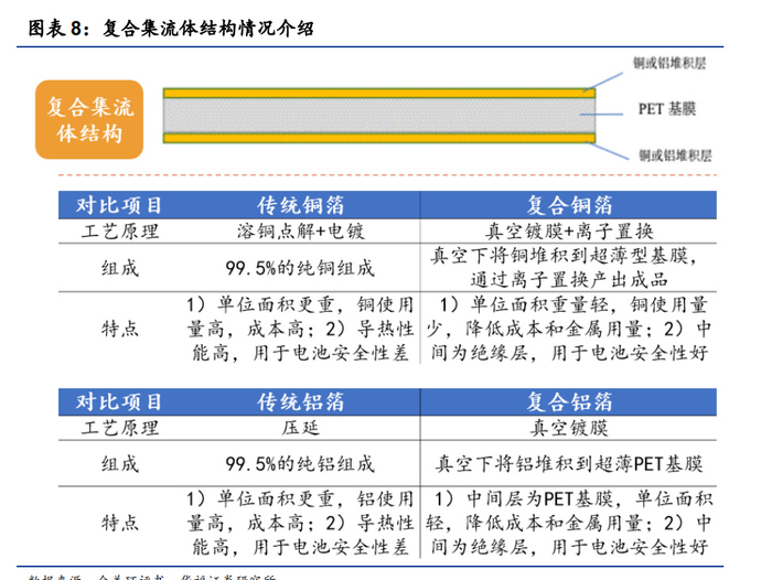 1.2 复合铜箔可降本、减重,复合铝箔显著提高电池安全性