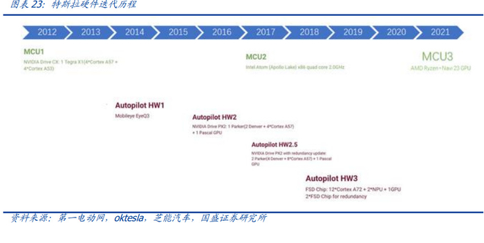 特斯拉的自动驾驶以纯视觉方案为基础,不断升级硬件算力,优化自动驾驶算法,再通 过 OTA 进行远程软件管理和升级。2019 年,特斯拉在 HW3.0 上实现全套芯片自研, 算力大幅提升至 144TOPS,拥有每秒 2300 帧的图像处理能力,是 HW2.5 的 21 倍,但 成本降低 20%。目前,特斯拉正在研发 HW4.0,计划在 Cybertruck 上首次搭载,预计 2024 年正式量产。