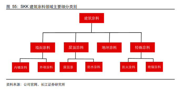 战术视角:SKK 多角度发力打造市场主导地位。公司为了保持行业领先优势,多维度共 同发力,在产品、服务与战略的多重加持下,在日本建筑涂料市场上始终保持市占率第 一:1)拓展更全更优的产品体系,打造优质产品矩阵,不仅瞄准高端市场提升品牌形 象,且不断创新技术迎合市场需求;2)提供差异化专业化服务,包括模拟配色与定制化 调色、针对二次装修提供整体化涂刷服务、针对非房领域提供专业化解决方案等;3)优 异的经营管理能力,拥有超出同行的库存和收现管理能力,及抗风险能力强的融资结构。 战略视角:识别不同阶段的市场需求,乘势而上。SKK 在战后日本房地产红利时期进入 行业,快速抢夺市场形成先发优势。70 年代中期房地产行业见顶后,下游需求呈现结构 性分化,公司根据二次装修需求、家庭规模小型化装修需求以及适老化改造需求,不断 拓展开发新品类,使产品应用场景不再局限于新建住宅。进入 21 世纪,随着日本人均 消费水平提升,公司着力开发了高端品类,将原有亲民、高性价比品牌形象升级,更好 地迎合市场需求。我们认为,中国建筑涂料企业的成长之路还很长,且需求变革及消费 升级对涂料企业管理能力提出高要求。