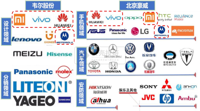 在手机领域(手机是CMOS图像传感器最大终端用户市场),北京豪威的主要客户为华为、小米、OPPO、VIVO、HTC、华硕、Motorola、LG、松下。