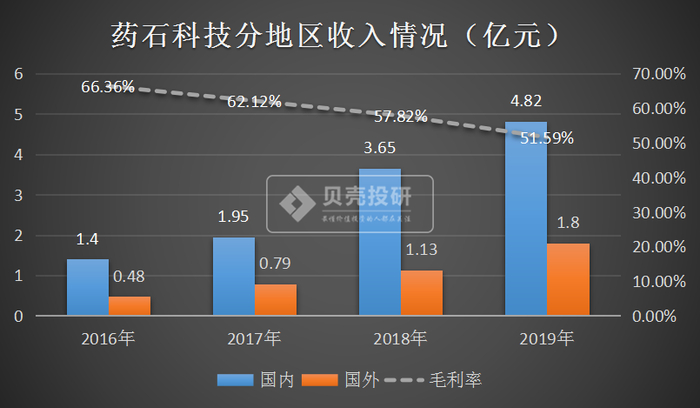 另外,还有一个点要提到的是由于国外业务利润空间相对较小,而药石科技国外业务占比较多,拉动了公司整体毛利率的下滑(公司近几年年报均未披露分地区成本、毛利率情况,此结论为贝壳投研(ID:Beiketouyan)研究推测)。