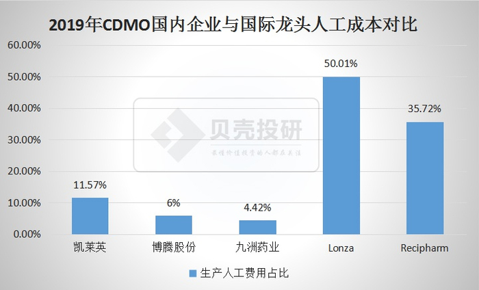 从全球CDMO市场竞争格局来看,我国最大的CDMO企业合全药业排名仅为第11位,2018年,瑞士龙沙制药化工巨头的销售收入约为59亿美元,其体量是合全药业的15倍。未来,在我国工程师红利及人员成本低的情况下,全球医药生产研发产业链仍将向国内转移。